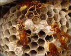 from plant matter or the hive is a mud/clay hive. The wasp will gather